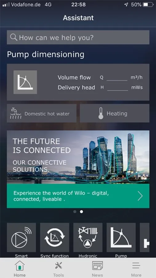 The pump specialist WILO SE has made the entire world of highly efficient pump technology accessible on the smartphones and tablet PCs. As an easy-to-use and mobile application, the app offers support in the areas of planning, customer consultation and installation. In addition, the user is presented with a plethora of valid selling points for energy efficient, economical and environmentally friendly pump technology for heating, air-conditioning and secondary hot water circulation.