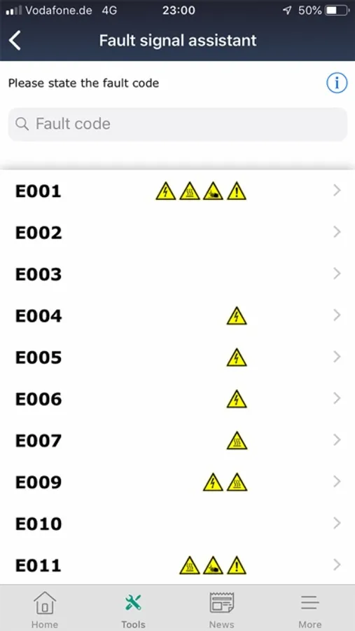 > Fault signal assistant: the "Fault signal assistant" tool contains fundamental information on possible fault signals that may be shown on the display of certain Wilo pumps. With some fault signals, the tool specifies the cause of the fault, describes the error and specifies possible remedies, in addition to basic information about hazards.