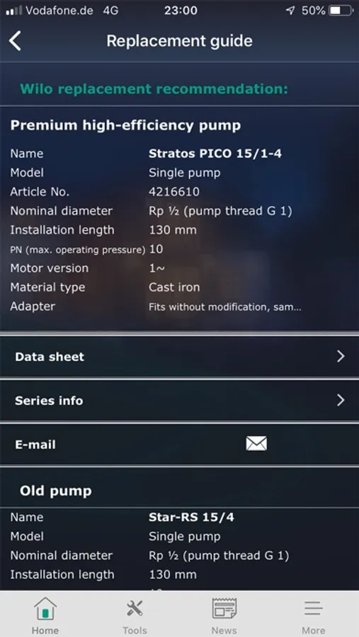 > Interactive replacement guide: simply enter the name of the pump to be replaced and you will be provided with a recommendation of the suitable, high-efficiency Wilo replacement pump. This service can be used in conjunction with thousands of commercially-available, old pumps that were manufactured in 1975 or later.