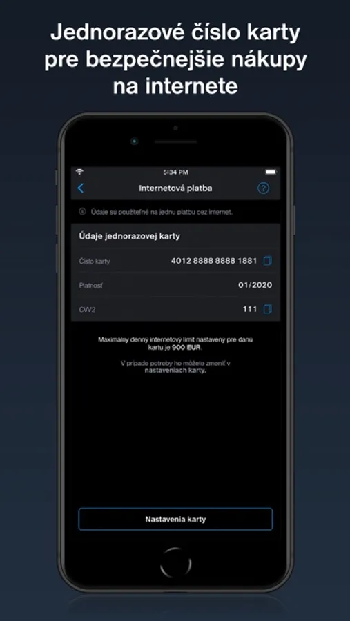 - Set daily limits on a debit or credit card as needed, blocking the card, displaying a PIN code, one-time card number
