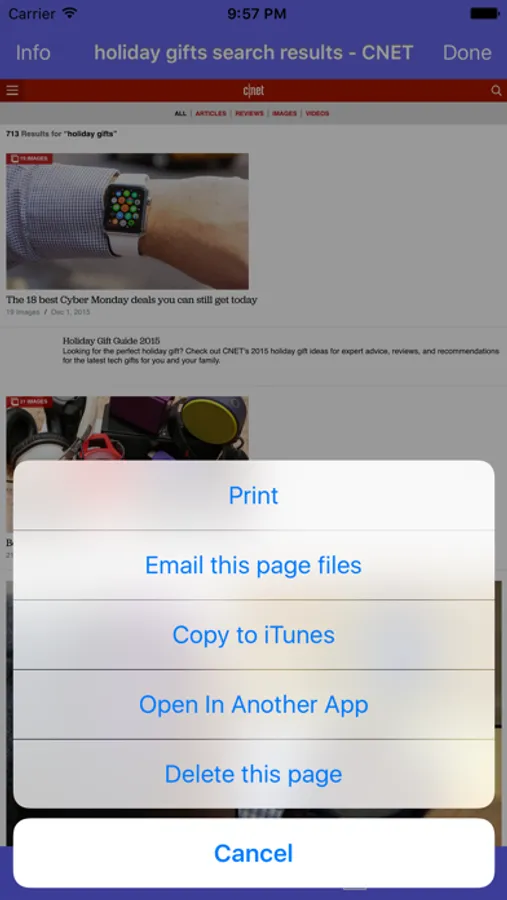 - Transfer saved pages from iPhone to other devices or Cloud services.