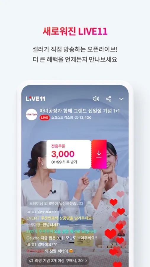- 원하는 방송 알림 신청하고 Live11 쿠폰도 받기