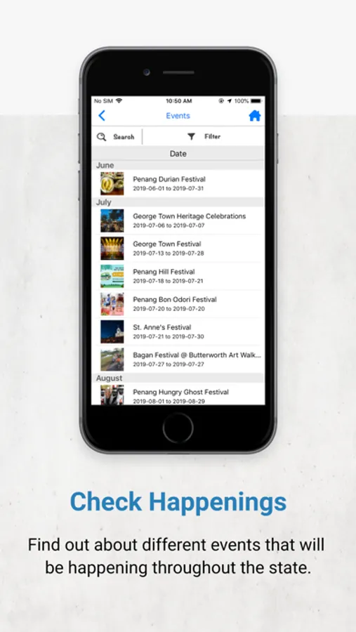 The application allows users to retrieve quick information, videos and photos of upcoming events, nearby attractions and places to visit, dine, shop and stay in Penang. Users will be able to find their current location and places they want to visit through GPS and Google Maps.