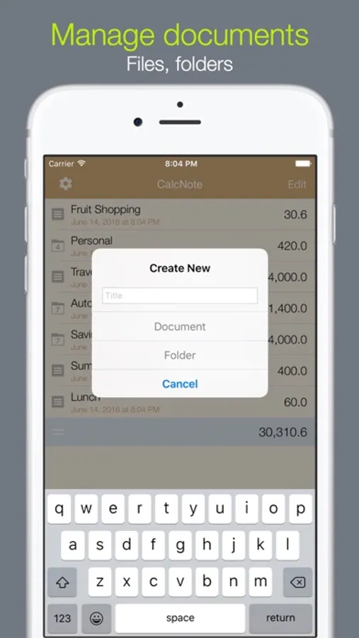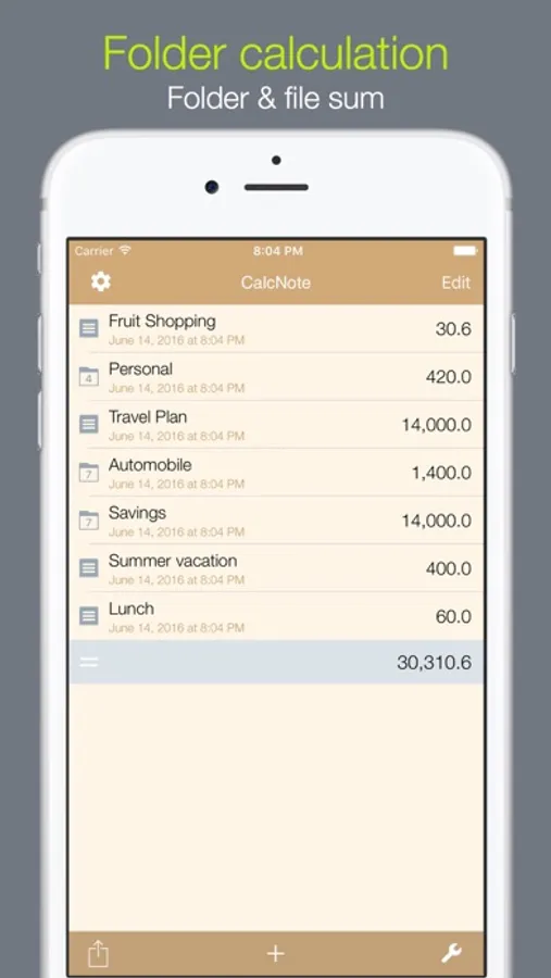 •Note files can be grouped by multi-depth folders and user can check each folder's total sum.