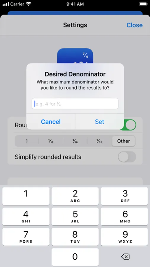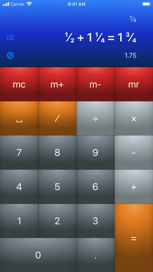 In addition to the standard memory functions that most calculators have, we also have precision settings. You can select for results to be rounded to the nearest ¹⁄₄ or whatever denominator you specify. This is perfect for those wanting to use this calculator with inches or other uses that don't require knowing the result down to the 5251st.