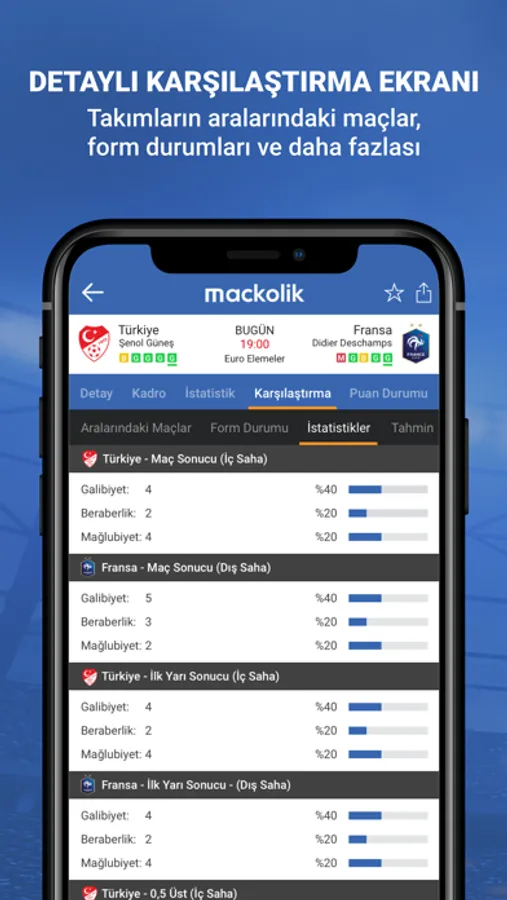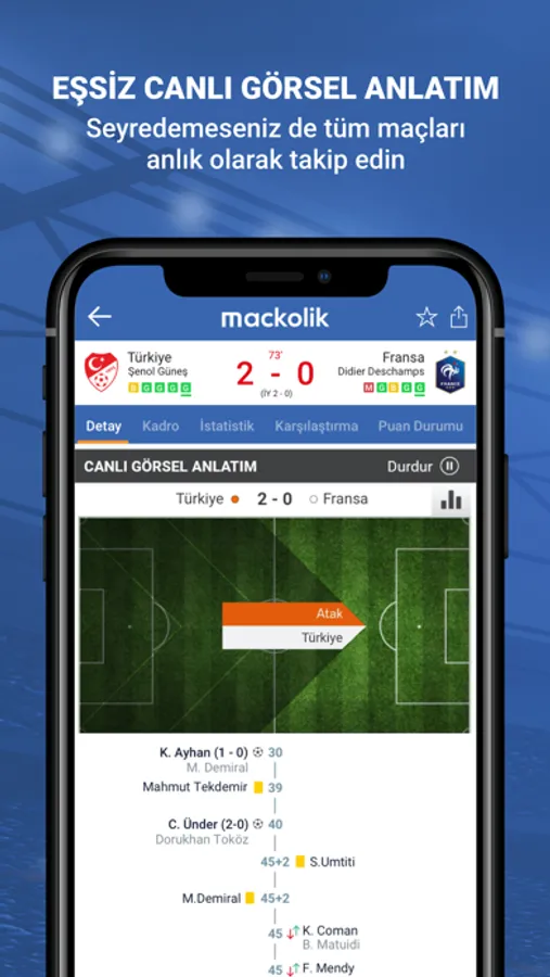 En hızlı gol bildirimleri, canlı sonuçlar, iddaa programı, detaylı istatistikler, ayrıntılı takım karşılaştırmaları ve oyuncu bilgileri, Mackolik ile cebinize geliyor.