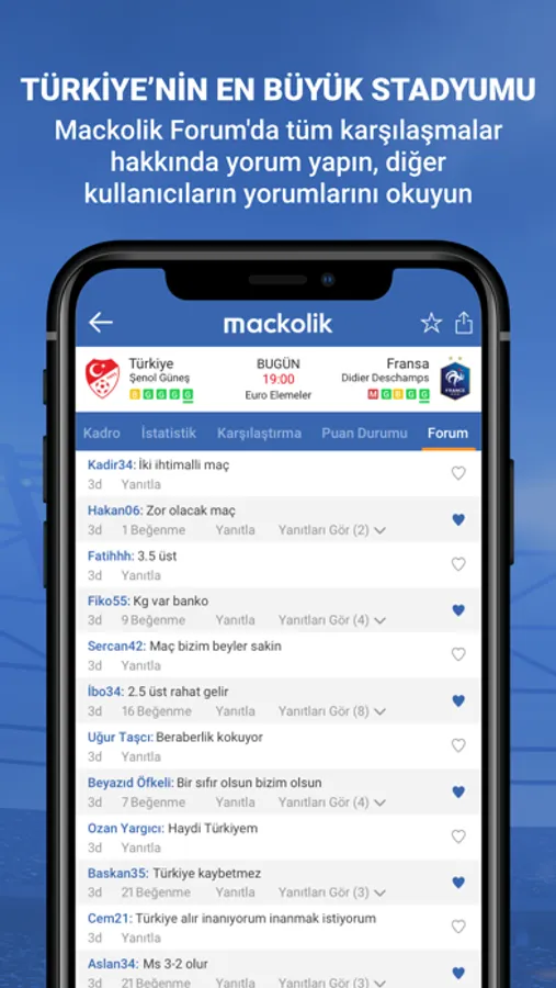 Maç heyecanınızı forumda paylaşın. Türkiye’nin en büyük stadyumu daha da interaktif hale geldi. Artık diğer kullanıcıların yorumlarını beğenebilir ve onlara yanıt verebilirsiniz. Ayrıca değişen üyelik sistemi sayesinde Google veya Facebook hesabınızla da foruma katılabilirsiniz.