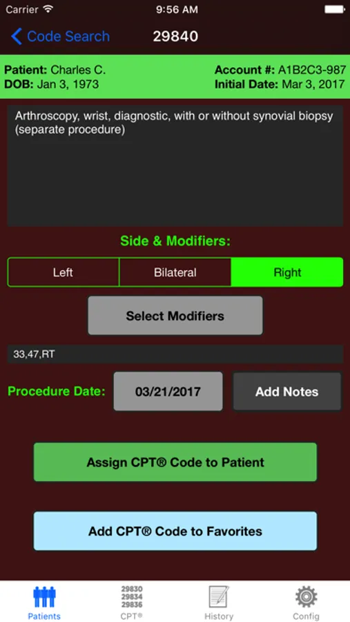 The App also provides the ability to apply modifiers to your codes, and also use the same code multiple times for the same patient - great when more than one finger is operated on. In short, Mobile Coder Hand & Wrist offers the most complete list of codes and time-saving features currently available for use by upper extremity surgeons.