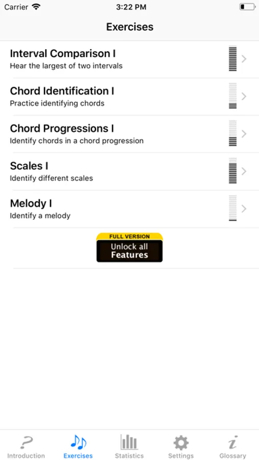 Ear Trainer Lite covers the following categories: