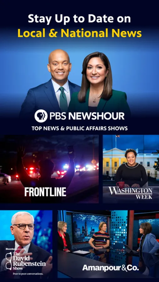 - News & Public Affairs: Programs from PBS NewsHour, Frontline, Amanpour and Company, Firing Line, and Washington Week.