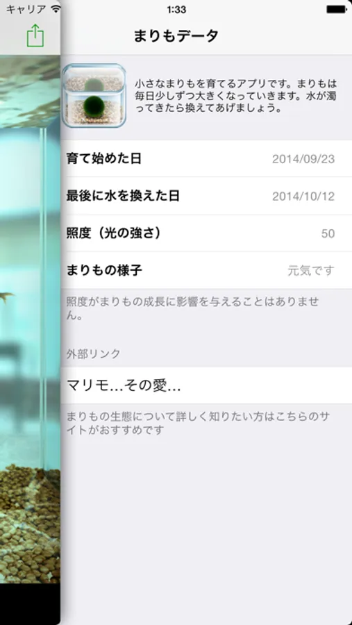 Marimo means a plant like a green ball which grow in Hokkaido, Japan.