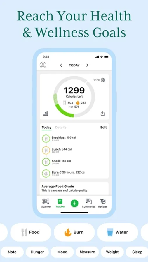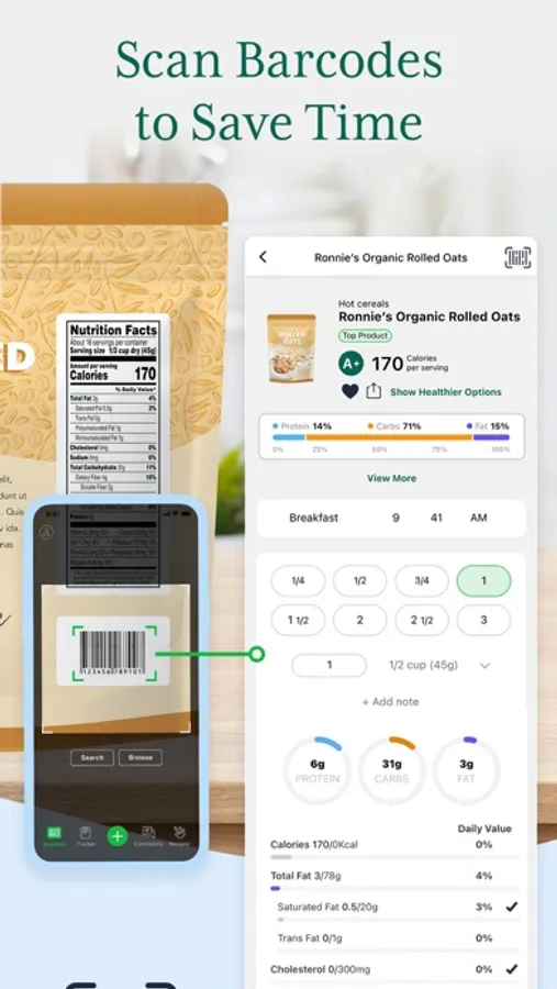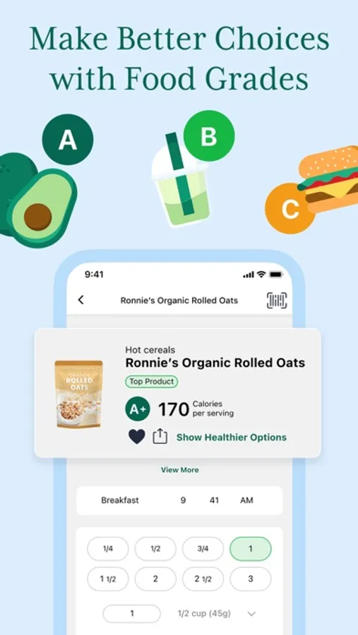 + Get a personalized nutrition grade (A, B, C, or D) for each food