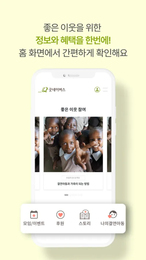 굿네이버스의 APP이 더욱 편리하고 다양해졌습니다!