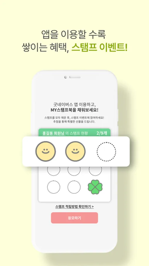 이벤트 : 즐거운 이벤트와 앱 활동마다 주어지는 스탬프 이벤트