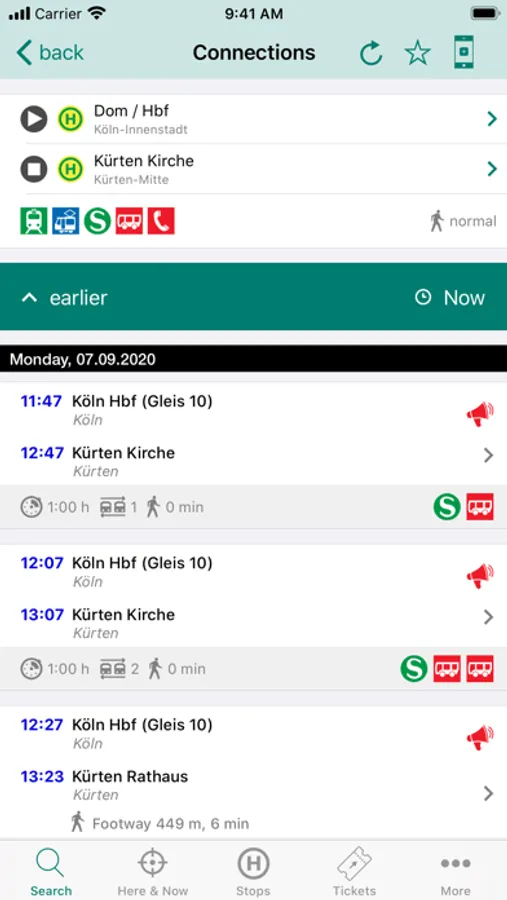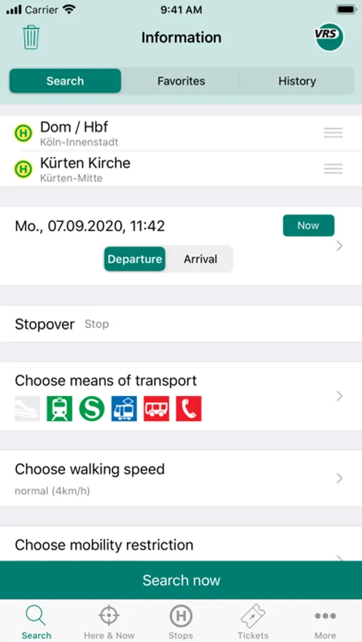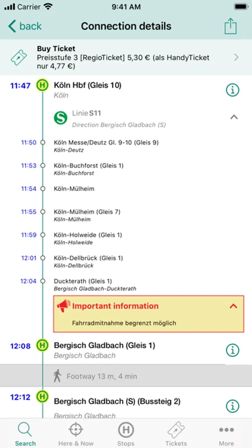 Lots of detailed information on every stop in the VRS area. Departure monitor, locations of P+R and B+R, current availability of escalators and elevators or the available rental bikes are just four of many types of available information.