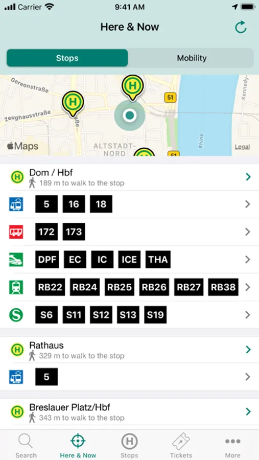 All stops and departure times in the vicinity of your location at a tap - of course also with map display