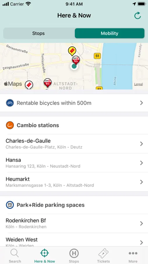You can plan your trips and buy tickets easily. With connection search, real-time timetables and interactive route plan. You can also see car sharing and rental bikes at your location.