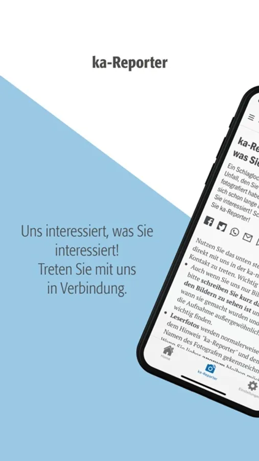 Kontaktieren Sie die ka-news-Redaktion direkt aus der App heraus über die ka-Reporter-Funktion