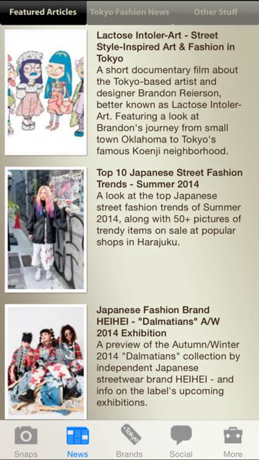 The free "Tokyo Fashion" app features daily updated street snaps from Harajuku and other areas of Tokyo, Japanese fashion news, fashion brand profiles, Tokyo shop info, updates from various social networks, and more.