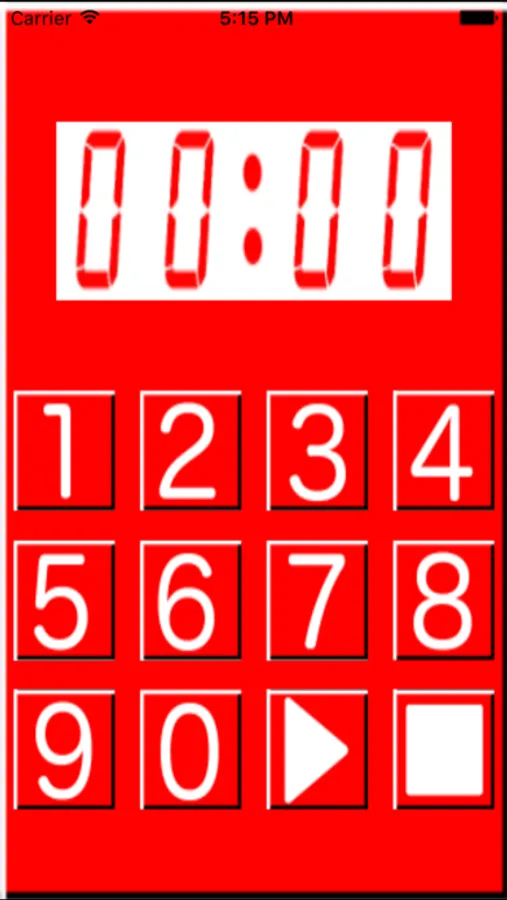 The countdown starts when touches the start button(the triangle). The countdown is canceled when touches the stop button(the rect). The counter blinks when the set time passes, and the alarm rings. The alarm stops if it touches the screen.