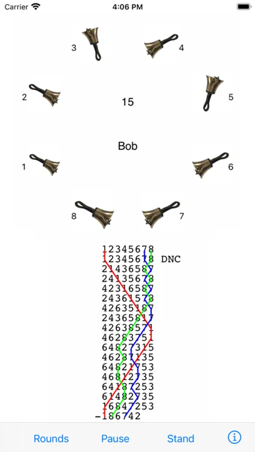 - Tap Start to start the bells ringing rounds.