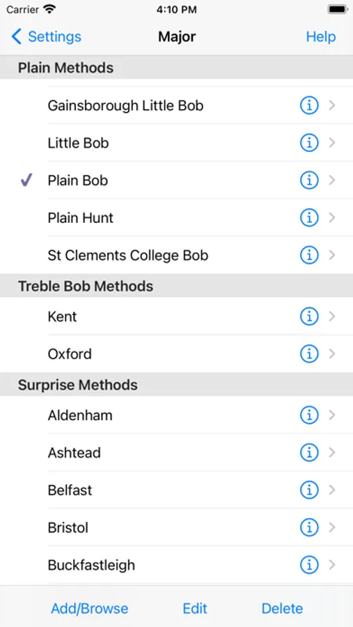 - Tap the info (i) button to view and change settings.