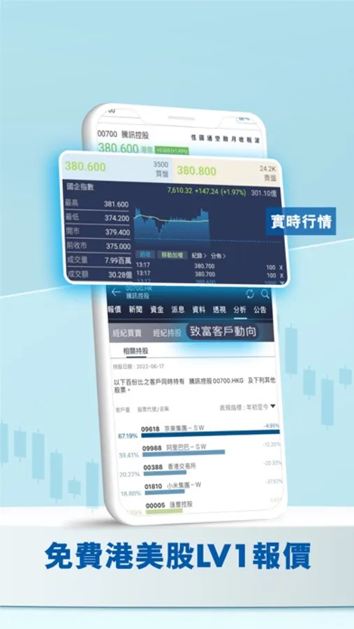 ● Free Stock Quote: Enjoy free HK Stocks LV1 real -time quotes service for both new and existing customers