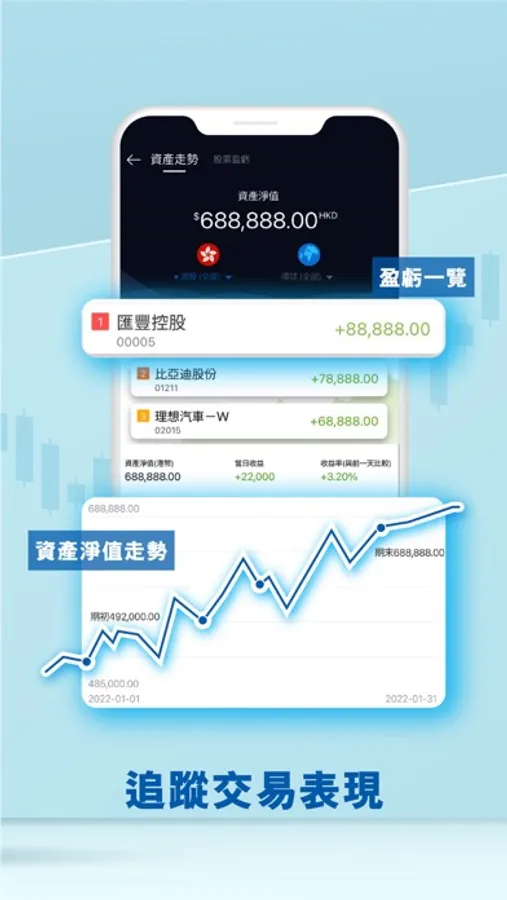 ● Performance Analysis: With Asset Trend and P&L Summary function helps you track and improves your trading performance easily.