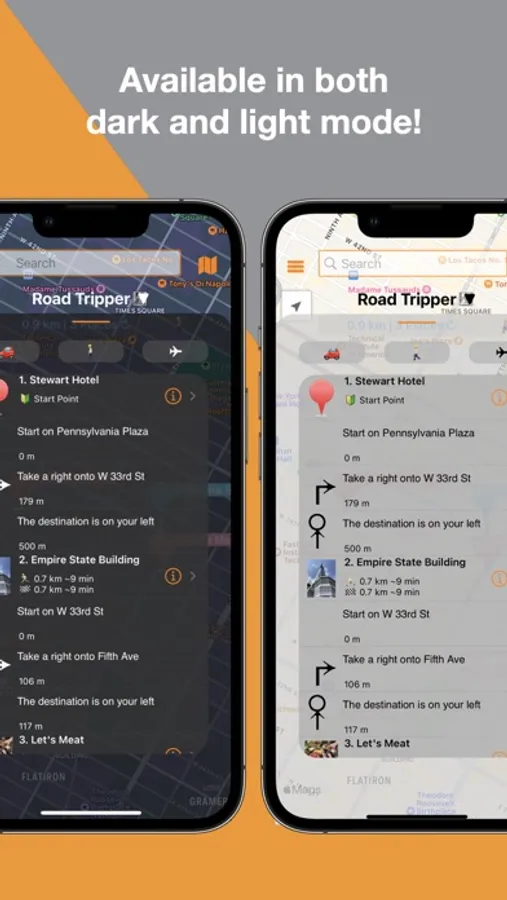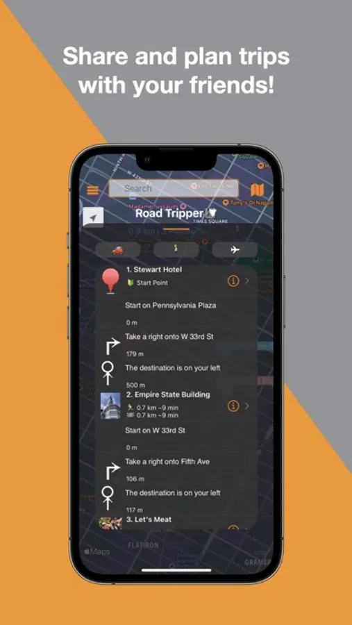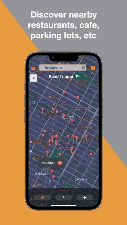 Add to your trip itinerary points of interest/places by searching a name or address from the Search bar, from your saved Contacts, or by long-tapping directly on the map. With the consistently updated Apple Maps, you can pinpoint any location around the world at ease, gaining access to updated information on restaurant, hotels, parking spots, and many more. Start and end your journey at the right places, with the help of Road Tripper!