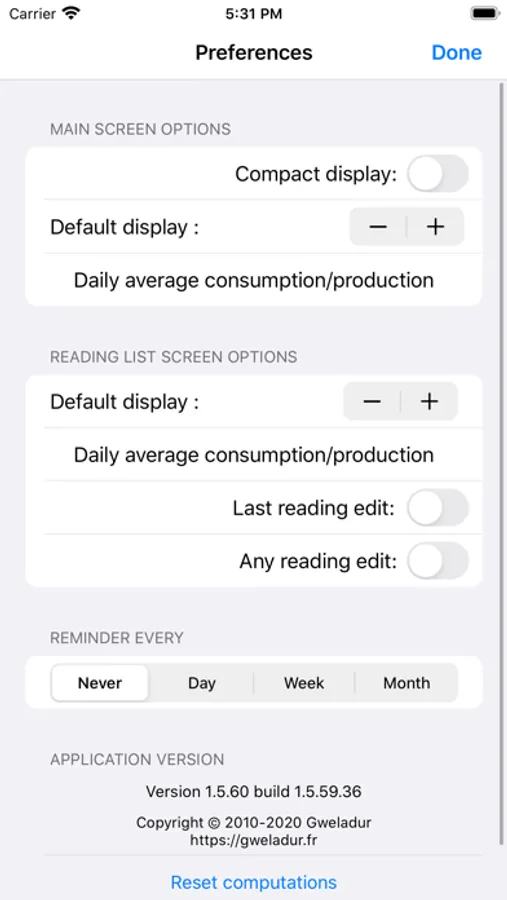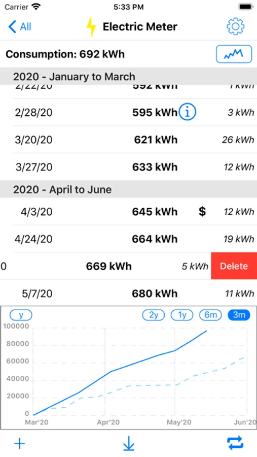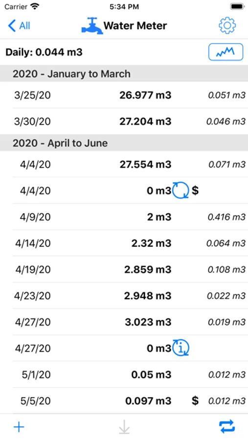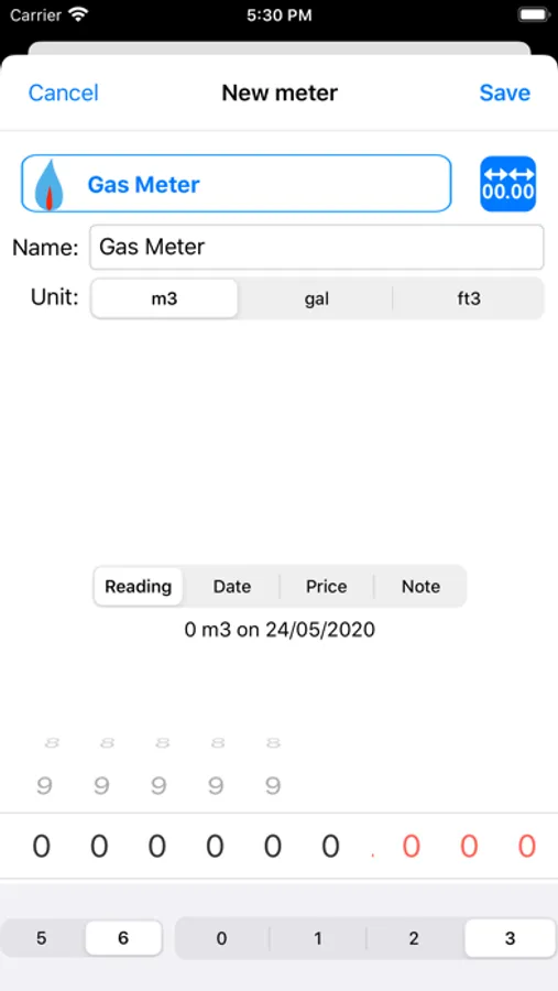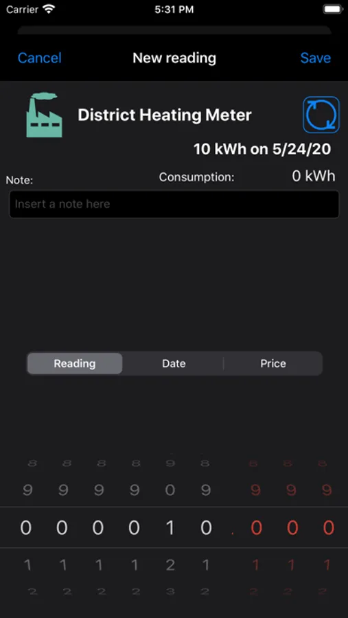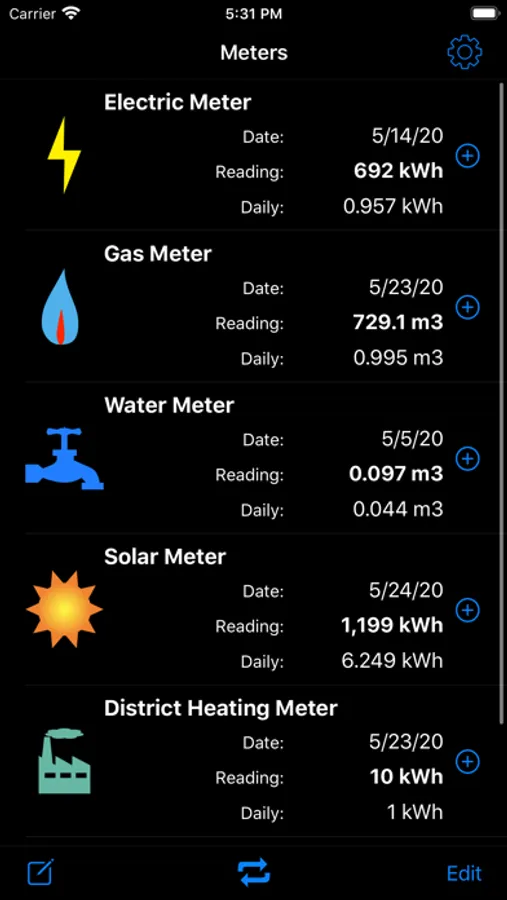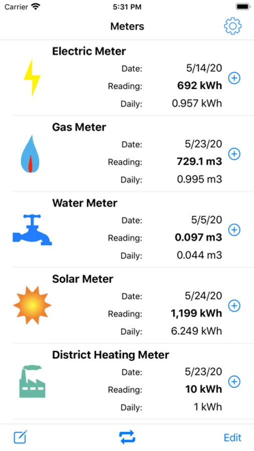 You easily add meter's reading and you can send the collected data via email to study them on your home computer.