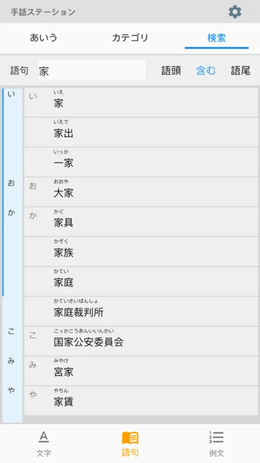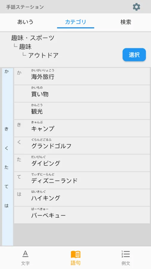 3種類(50音順、カテゴリ選択、文字列検索)から使用目的にあった方法を選択できます。カテゴリは3段階(大分類、中分類、小分類)に分類されていますのでテーマ毎に体系的に習得できます。