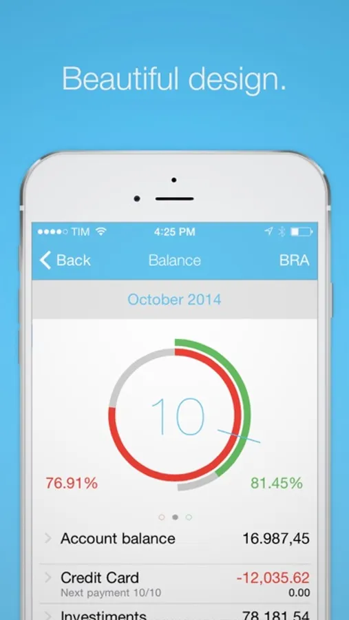 • Know how much you have left to spend in the month. Balance report show how much you received, how much you spend and the current day of the month, showing your balances in accounts and the next credit card bill;