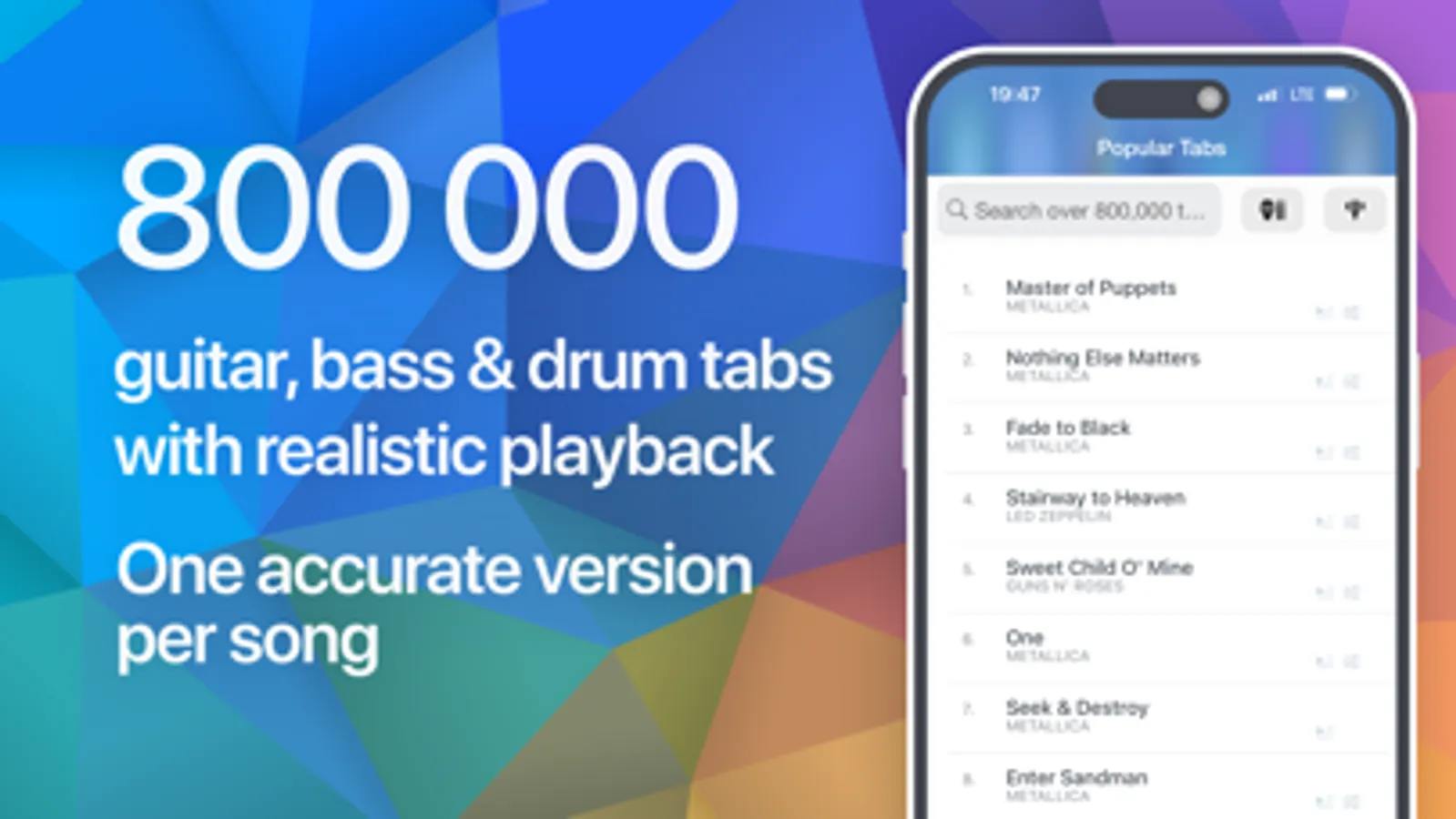 Featured in the Wall Street Journal as one of "The Best Apps for Learning to Play Music" and as the Apple App of the Week, Songsterr gives you free instant access to 800,000+ high quality guitar, bass and drum tabs & chords with FREE realistic playback.