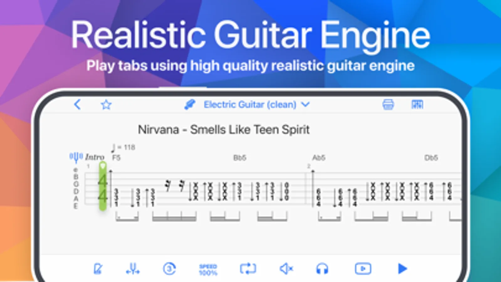 • Realistic Guitar Engine. Learn and play along with Songsterr.