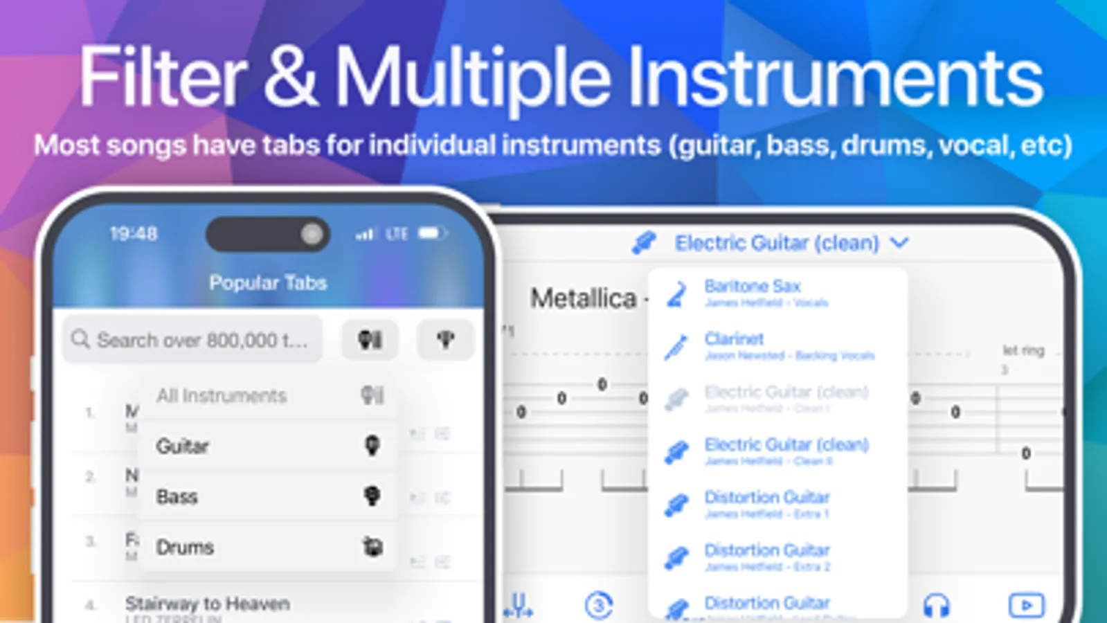 • Instrument Filter. Filter out songs that don't have a tab for your instrument.