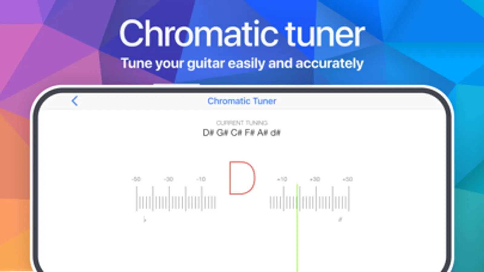 • Chromatic Tuner. Tune your guitar via mic or adaptors like iRig.