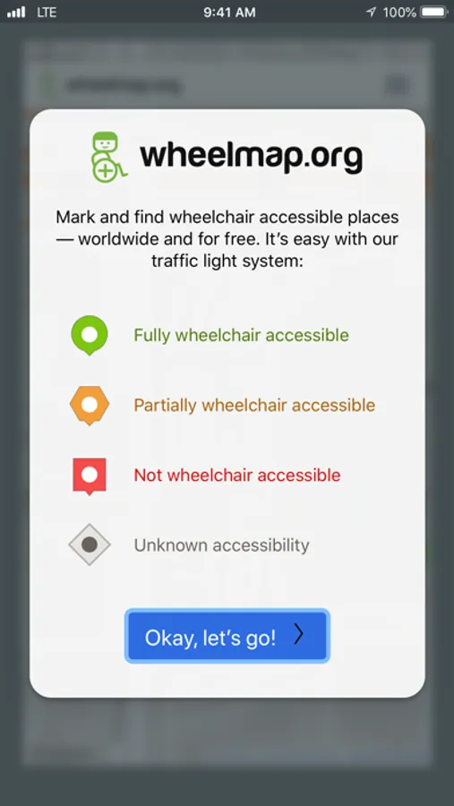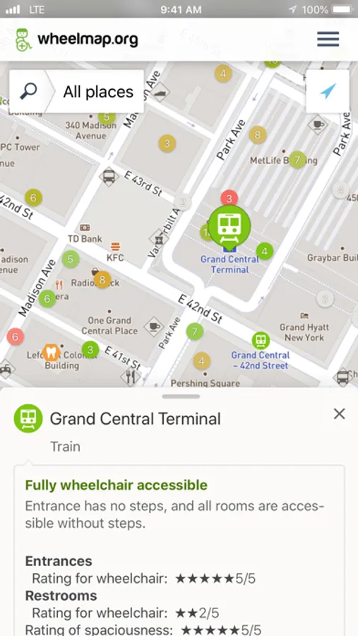 Find wheelchair accessible restaurants, cafes, toilets, shops, cinemas, parking lots, bus stops and much more. The Wheelmap and OpenStreetMap communities have already rated about 1 million places! Ratings for another million places come from a growing number of partners such as Foursquare City Guide, Jaccede, AXSMap, HERE, Parkopedia, bahnhof.de, Mapy bez barier, etc. All in all, you can find accessibility reviews of more than 2,000,000 places on Wheelmap! More entries are added daily.