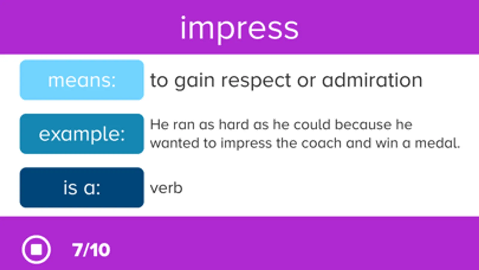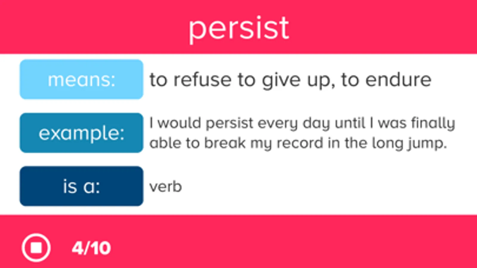 • Study hundreds of vocabulary words at your own pace with guided step-by-step learning