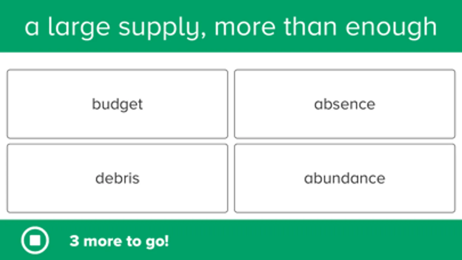 • Just like a set of flash cards, any word a student gets wrong on one of the practice quizzes is returned to the "back of the deck" and will be asked again to make sure the student can answer every word in that section correctly