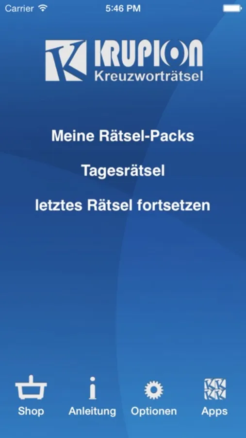Täglicher Rätselspaß mit dem Kreuzworträtsel von Krupion. Mit dieser kostenlosen App bekommen Sie unendlich viele Rätsel auf Ihr iPhone.