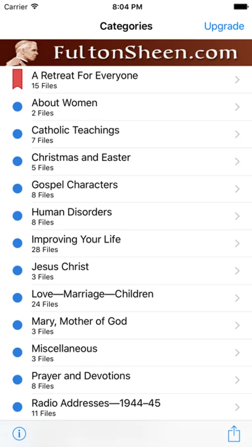 An audio collection of almost 300 talks of Archbishop Fulton J. Sheen, the great 20th Century Catholic preacher, writer, and radio and television personality, who died in 1979 and is soon to be Beatified in the process of becoming a canonized saint in the Catholic Church. Experience his famous, captivating voice that inspired millions, and is still inspiring listeners, to draw closer to Jesus Christ. You will see why he was admired by people of all religions.