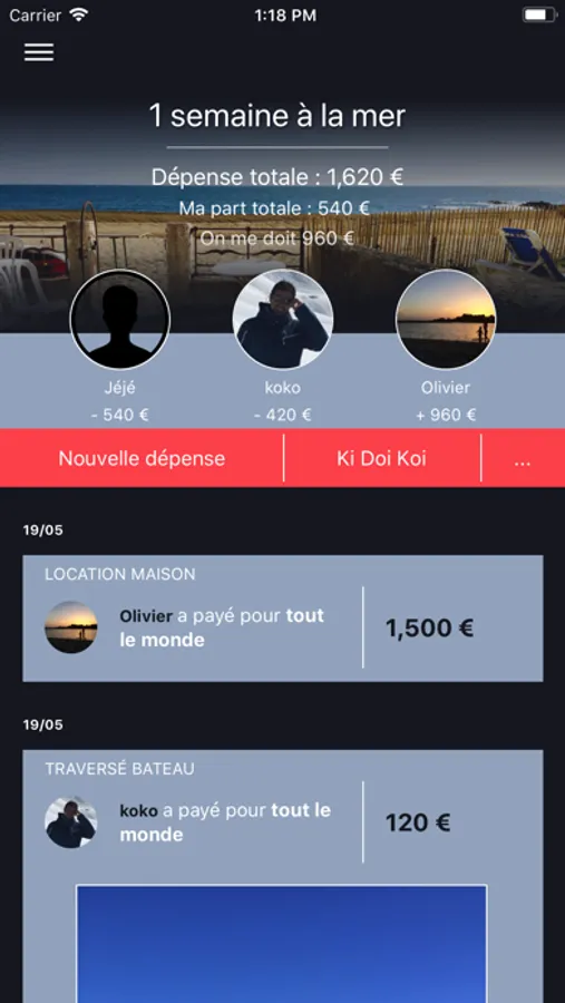 L'application KidoiKoi vous permet facilement de faire vos comptes entre amis.