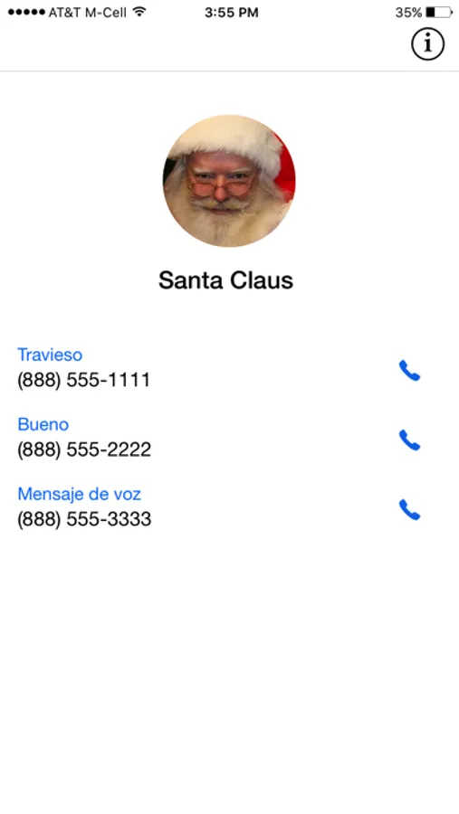 ¡Sólo elige la llamada y empieza a hablar con Santa! Cada vez que haya terminado de responder a una pregunta, toque en cualquier lugar de la pantalla, y le dirá a su próxima línea de diálogo. Las llamadas se registran automáticamente en vídeo! ¡Es fácil!