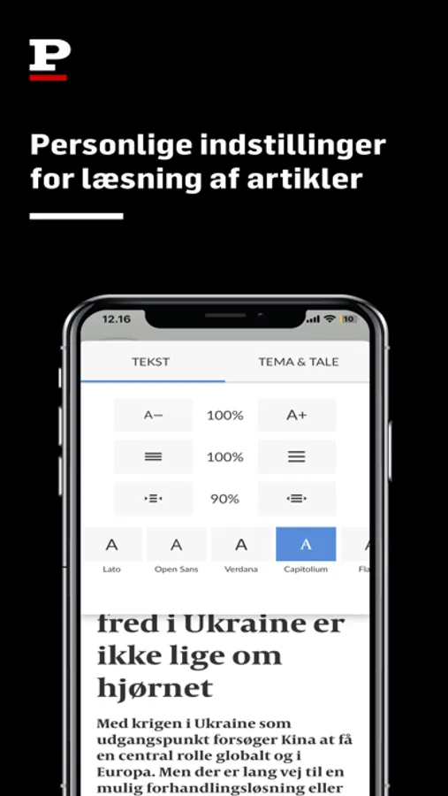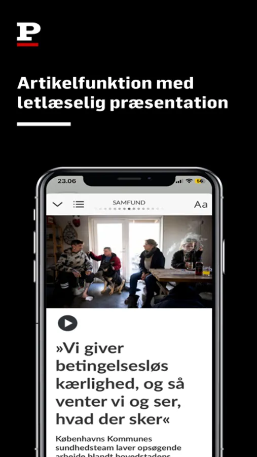 • Det er muligt at få læst artikler i e-avisen op ved hjælp af automatisk oplæsning. Tryk på playikonet øverst når du er inde på en artikel og artiklen vil blive læst op.