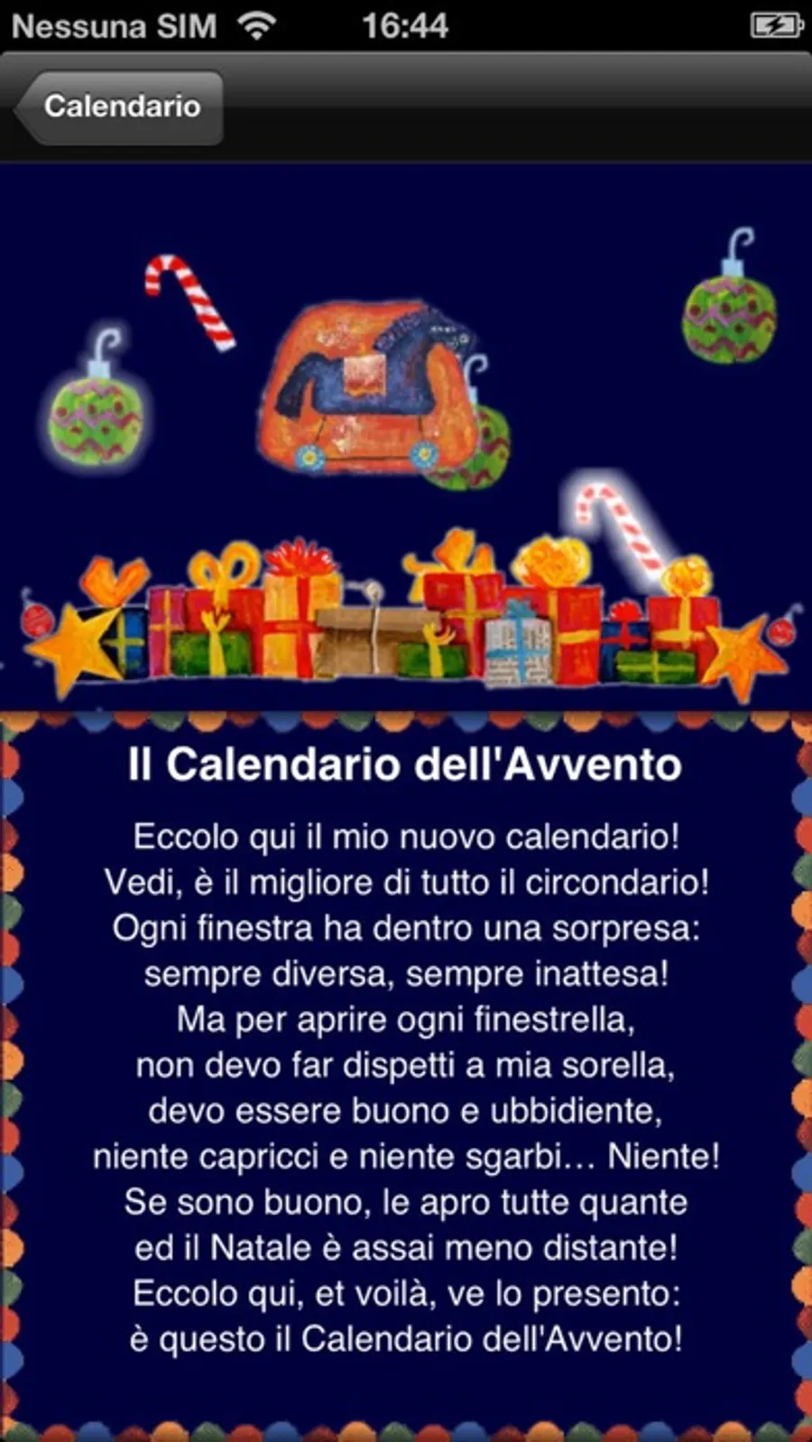 Every time you open a window you can read a new nursery rhyme, combined with interactive animation. The associated image can be dragged on the screen and moved with the fingers.