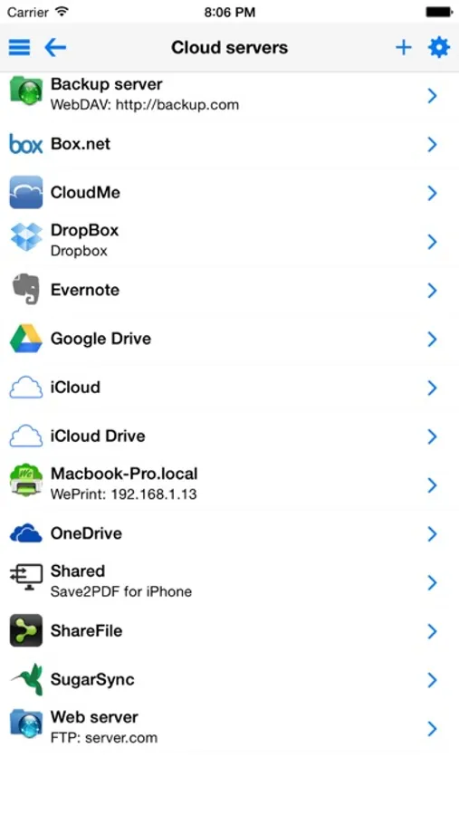 • Fully integrated with iCloud, CloudMe, Dropbox, GoogleDocs, Box.net, WebDAV