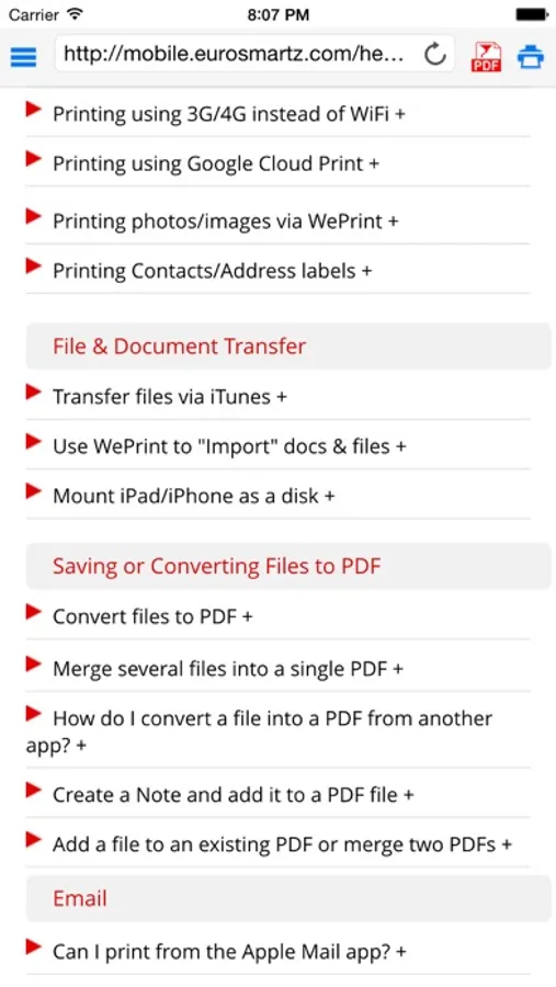 • Transfer documents and files from a computer into Save2PDF either via iTunes or by mounting the iPhone as a disk or using the free file transfer software, WePrint