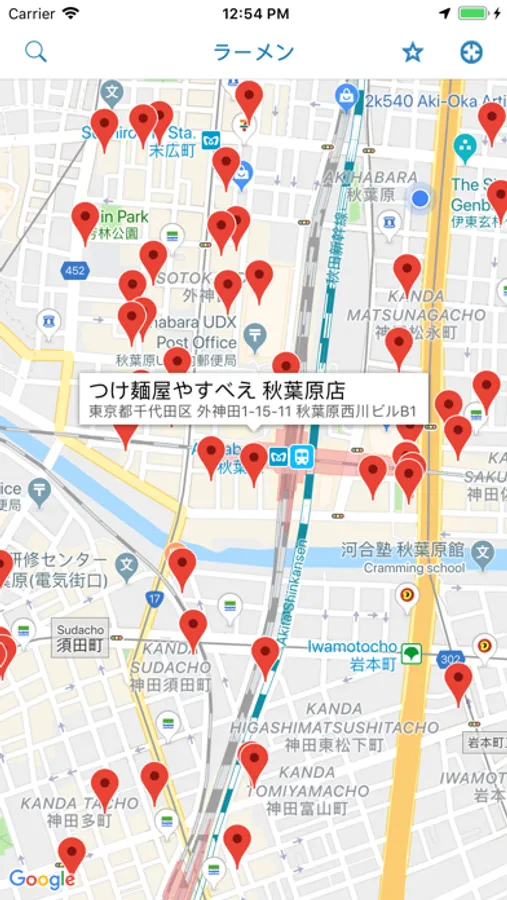 ・ラーメン店舗までの距離を表示、もちろんナビゲーション機能付き