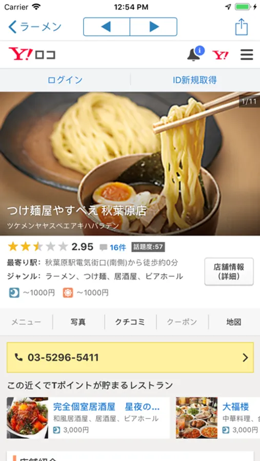 ラーメン食べるなら、今いる場所近くにあるラーメンのお店を探すことが出来ます。お店の写真や口コミを確認できます。