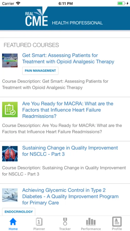 RealCME Health Professional iPhone app requires an Internet connection to view and complete activities.